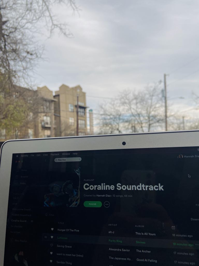 The Third song I chose is “Saving Grace” by Alexandra Savior. I wanted this to play when Coraline comes back from her visit with Mrs. Spink and Forcible when the weather is a dense fog. Before running into her new friend Wybie, Coraline skips and hops away; leaving some room for an ominous electric guitar moment. This song perfectly depicts the description of “ominous electric guitar.”